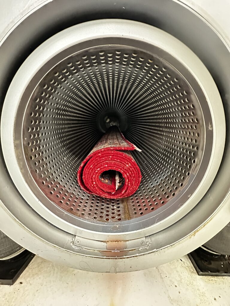 After washing, your rug is placed into a rinsing centrifuge, working much like a spin cycle in a home washing machine.